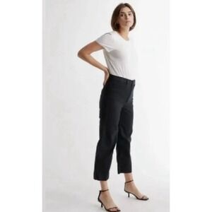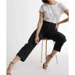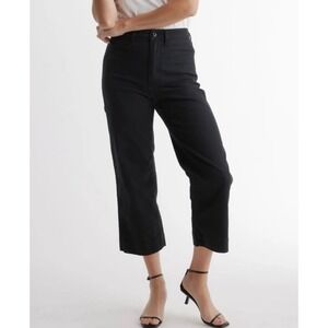 QUINCE Black organic stretch cotton twill wide leg crop pant NWOT size 32