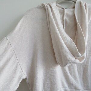 QUINCE Brushed Lounge Cropped Pullover Hoodie in Heather Oatmeal - Size S