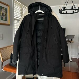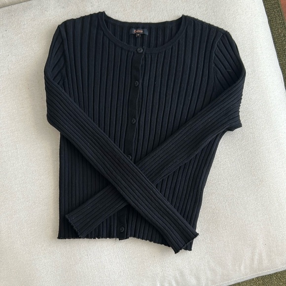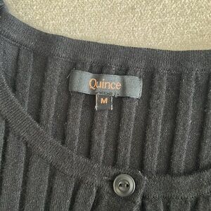 QUINCE Ribbed Button-up Sweater — stretchy, soft, thick “eco-knit” blend — large ribbed fitted cardigan — round neckline — lettuce hems — worn once — excellent condition —