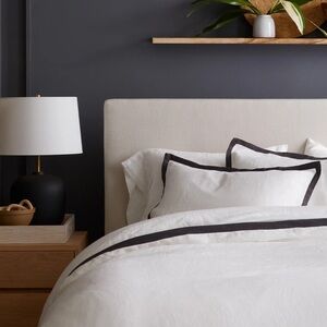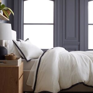 This unique feature instantly elevates and creates a striking look in any bedroom. The European Linen Contrast Flange Duvet Cover Set is pre-washed for superior softness and a perfectly lived-in vibe, and only gets better over time. It's also remarkably breathable and moisture-wicking, making it perfect for every season.