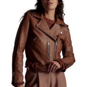 NWOT Quince Leather Moto Jacket in rare Cognac brown — retail $200, never worn. A premium closet essential with timeless style.