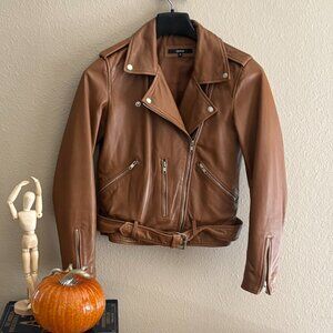 QUINCE Leather Moto Jacket – Cognac Brown – Small – NWOT
