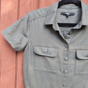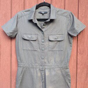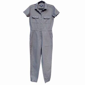 QUINCE | Linen Cotton Twill Short Sleeve Grey Utility Coveralls Jumpsuit XS