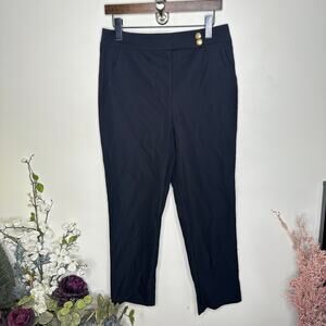 QUINCE Scuba Slim Ankle Pants Gold Button Black Sz 10 {3H8}