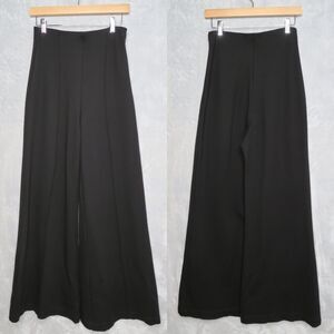 QUINCE Ultra-Stretch Ponte Super Wide Leg Pants Size M Black Side Zip Chic