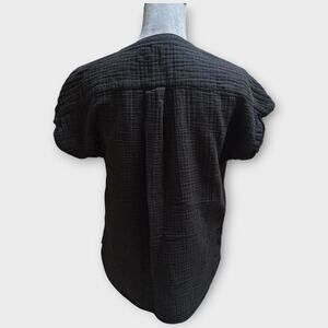 QUINCE Women’s Black Gauze Button Front Short Sleeve Top Size S