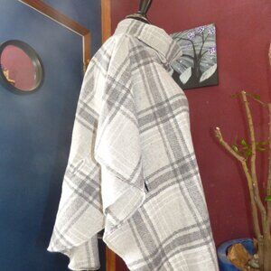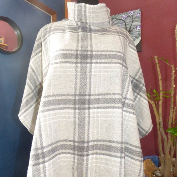 QUIRKY BOHO GOTH ROYAL STANDARD GRAY PLAID CHECK PONCHO TOP WITHOUT BELT O/S