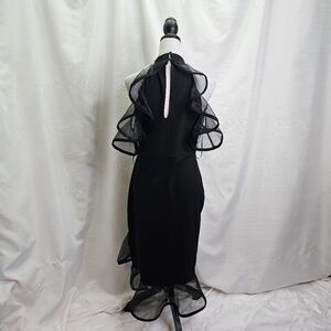 QUIZ Black Organza Ruffle Halterneck Bodycon Midi Dress Size US 10