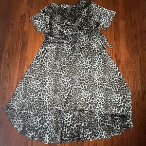 QUIZ Curve Green Satin Leopard Print Dress with High-Low Hem Size 20