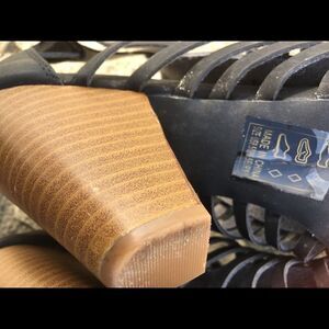 Qupid Chamber heeled sandals. Huarache sandals with a faux leather woven upper.