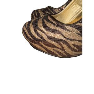 QUPID Brown/ Gold Zebra Print Rhinestone Platform Stiletto Heels Size 8