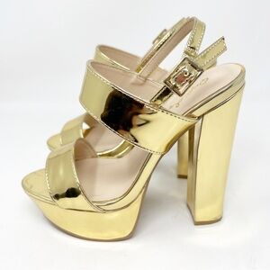 QUPID GOLD METALLIC SEXY PARTY VEGAS PLATFORM SANDALS SZ 5.5
