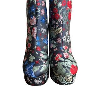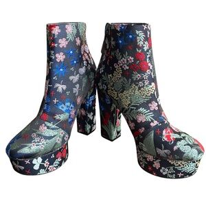 QUPID Silk Floral Embroidered Platform Heeled Ankle Boots Size 8