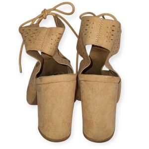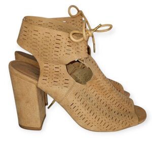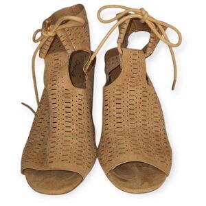 QUPID TAN OPEN TOE BLOCK HEELS BOOTIES SZ.7.5 EUC.