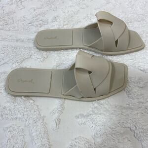QUPID Womens Flat Slide Sandals Sz9 Warm Gray Slip-ons Summer Comfortable Resort