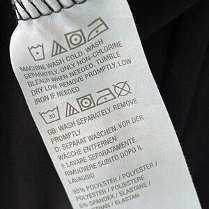 Really cute polyester V-neck black top with buckle accent on sleeves. Lying flat armpit to armpit 25", length 35". Machine washable. Smoke free home.