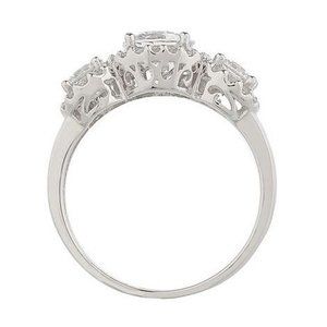 QVC Epiphany Platinum Clad Diamonique 100-Facet 3 Stone Ring 0232