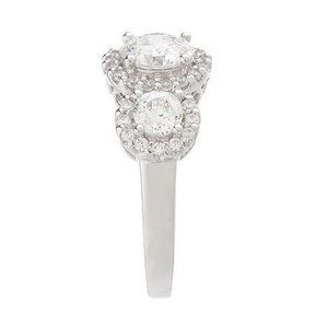 Three prong-set, round Diamonique(R) simulated diamonds are framed by small prong-set round stones, echoing the shapes and styles you see from upscale jewelers.