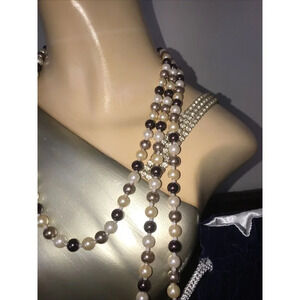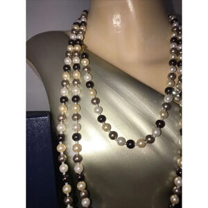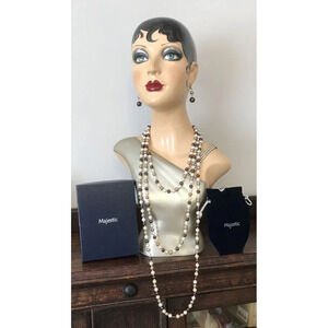QVC Majestic Simulated Pearl 4 Tones 100” Total Necklace Earrings Quality Heavy