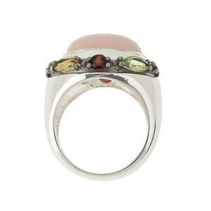 In the pink. A healthy dose of prong-set gemstones--round garnets and marquise-shaped amethyst, citrine, peridot, and blue topaz--surround the gorgeous, oval-shaped pink opal at the center of this glistening ring.