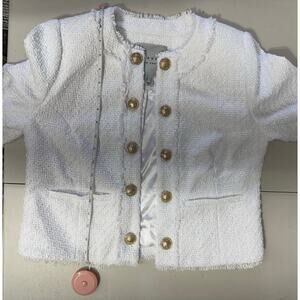 QVC Susan Graver Cropped Tweed Blazer w/ Fringe Detail White NWOT Size 12