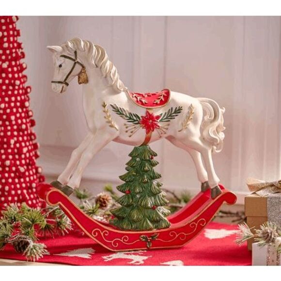 QVC Valerie Parr Hill Christmas Rocking Horse Light Up Tree Red White Green New