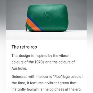 Qantas airlines business class amenity bag (bag only) created for the airlines 100 year anniversary this bag was inspired by the 1970s. Green with orange and blue stripes. Perfect condition. Man made non leather material.
