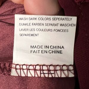 Qearal burgundy chiffon like layered blouse with sheer sleeves and keyhole neck. Embroidered polka dots on the exterior layer. Size small. In excellent preowned condition! Measurements taken when blouse is lying flat and are approximate.