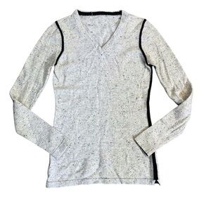 Qi 100% Cashmere Gray Speckled Long Sleeve Sweater Sz XS