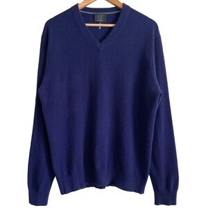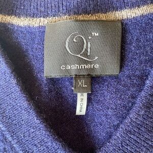 Qi 100% Cashmere Supersoft Preppy Lightweight V-Neck Pullover Sweater Sz XL