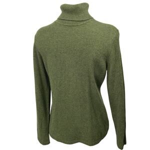 Qi Cashmere 100% Women's Green Knit Turtleneck Long Sleeve Pullover Sweater Top S