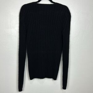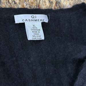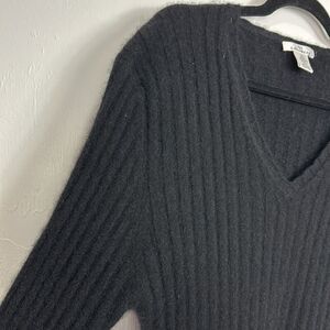 Qi Cashmere Black V-neck Ribbed Knit Fitted Pullover Sweater Size XL