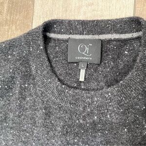 Qi Cashmere Sweater Large Black Speckled Crewneck Long Sleeve 100% Cashmere