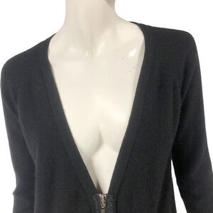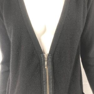 Qi Cashmere Black Zip Front Cardigan Sweater Womens Size S Small