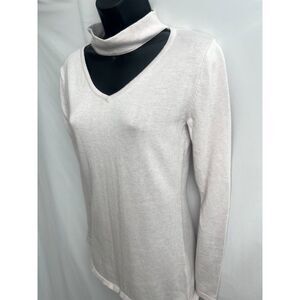Qi Cream White Cotton Silk Blend Sweater Cutout Front Size S Minimalist Sexy