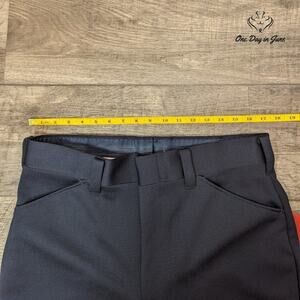 Swim into the cobalt abyss of these Qiana Touch dress pants, a startling symphony of nylon and polyester, raging like a tempest yet as tranquil as a pond. A sartorial choice of the brazen and the suave, these men's pants are untouched by time, virgin and new, a testament to the quiet dignity of unyielding nonconformity.