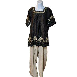 Qianzi 2pc Set L Black Tan Embroidered 65/35 Cotton Blend Desi Fusion Ethnic