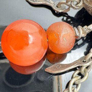 Qing Antique Chinese Silver Gourd Snuff Bottle Charm Coral Adornment Chain 20 g