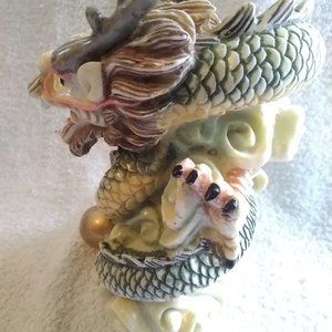 Qing Dynasty Golden Dragon Statue with Gold Ball: 新年快樂
