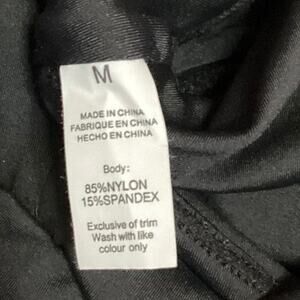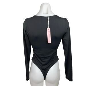 Qinsen Women's Black V-Neck Long Sleeve High Cut Leg One Piece Bodysuit Size M