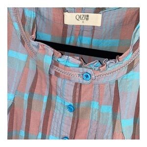 Qizi Women’s Plaid Blouse Elbow Length Sleeve Button Front Blouse