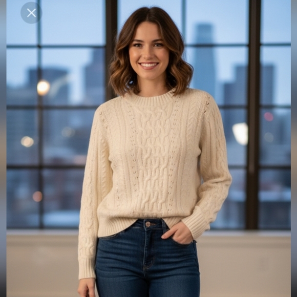 Qmack Cropped Cottage Prairie Womens Sweater Cream Size Large