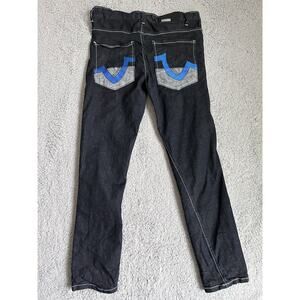 Qruel Jeans Co. Mens 34 X 30 1/2 Embroidered Pocket Skater Denim Black Jeans