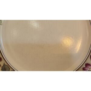 Add a touch of vintage elegance to your dinnerware collection with this Mikasa Intaglio GARDEN HARVEST Dinner Plate. Crafted from high-quality stoneware, this round dinner plate boasts a beautiful Garden Harvest pattern in multicolor, perfect for all occasions. The plate is 11 1/8 inches in diameter, with a semi-matte finish and a printed backstamp. This original, late 20th-century dinner plate is oven, microwave, and dishwasher safe, making it a convenient addition to your kitchen. The plate is produced using art pottery techniques in Malaysia, and features a Fruit theme. Ideal for serving your favorite meals, this one-piece set is a must-have for any pottery and glass collector. Dinner plate diameter is 11 1/8" and they are chip free. These are pre-owned plates and do have minor utensil marks. Please be sure to review all the pictures prior to purchase. Otherwise in excellent condition.