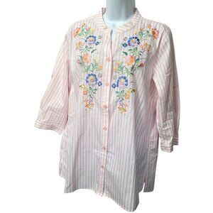 Quacke Factory Floral Embroidered Blouse by Jeanne Bice Striped Mature Womens M