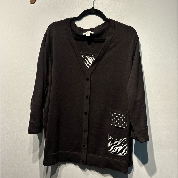 Quacker Factor Black Sweater With Zebra Print Accents Short Sleeve Sz3X Cotton