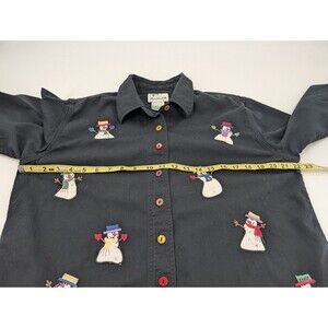 Quacker Factory 100% Cotton Snowman Embroidered Button Up Shirt Black Size Large