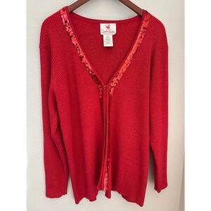 Quacker Factory 1X Red Ribbed Knit Sweater