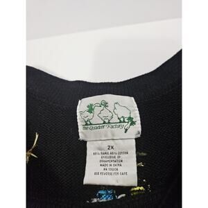 The Quacker Factory 2XL Black Christmas Manger Sweater is a vintage-inspired piece perfect for the holiday season. This tight-knit sweater features embellishments such as beads, embroidery, and sequins, adding a touch of sparkle to the Manger Scene design. Made from a blend of Ramie and Cotton, this heavyweight sweater is ideal for colder weather and can be styled for various occasions including travel, parties, and casual outings. With a classic crew neckline and long sleeves, this sweater is a timeless addition to any woman's wardrobe, representing the Holy Family and Christmas theme in a unique and eye-catching way.