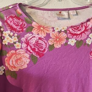 Quacker Factory 3/4 Sleeve T-Shirt with Floral Roses Bling Purple Medium